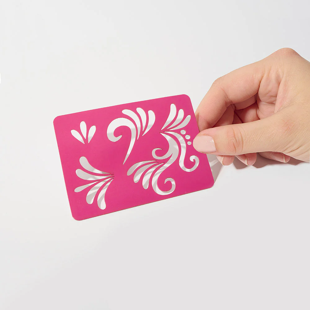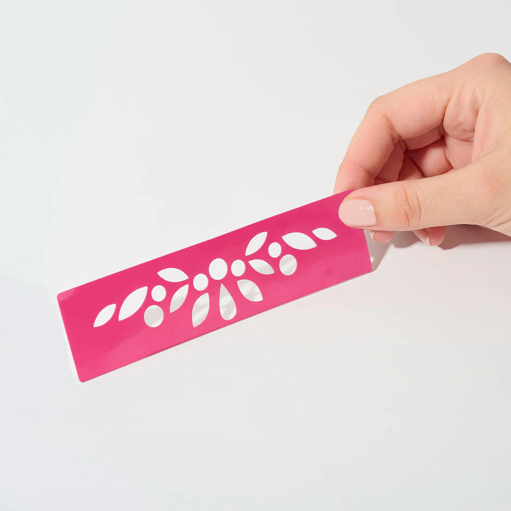 Nos pochoirs sont fabriqués en France et ont été testés sous contrôle dermatologique, pour vous garantir une expérience sûre et agréable, même sur les peaux sensibles. Leur matière souple et adhésive respecte votre peau tout en assurant des contours nets et précis.